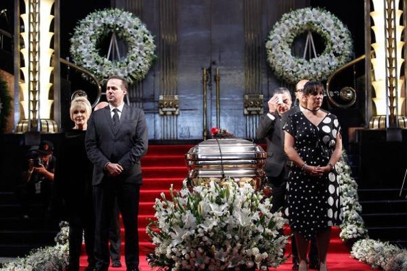Apenas llegó la carroza fúnebre con los restos de “El Príncipe de la Canción”, y el público se volcó en aplausos y porras en su honor. Anel Noreña, quien fue su segunda esposa, bajó los cristales del auto en el que viajaba y saludó a los fans, quienes para ese momento, le gritaban “¡Sí se pudo!”.