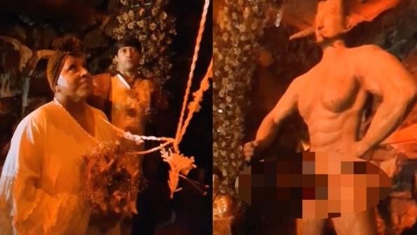 Para llevar a cabo el ritual, el brujo le coloca un lazo que la unirá simbólicamente para siempre con la estatua de más de 2 metros de altura y miembro fálico enorme. Y entonces, le pregunta si llegó allí de forma voluntaria y si no le importa lo que diga la sociedad, las religiones o su familia sobre casarse con el Diablo.