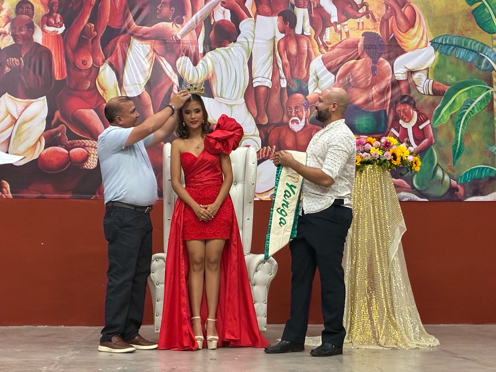 Fue el alcalde de Yanga, Fernando Nicolás Gordillo Torres y el director de Miss Earth Veracruz, Jesús Montoya Sánchez, quienes coronaron e impusieron la banda a Vanessa Echeverría Herrera que la distingue como la reina de belleza de este municipio.