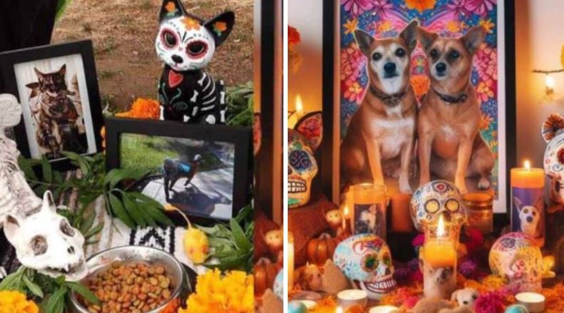 En las ofrendas de este día no faltan las flores de cempasúchil, símbolo del sol y del camino que guía a las almas, ni las fotografías de los peludos compañeros que dejaron huella en la vida de sus familias. También se colocan veladoras para iluminar su camino y, en algunos hogares, pan o croquetas, como muestra de amor y memoria.