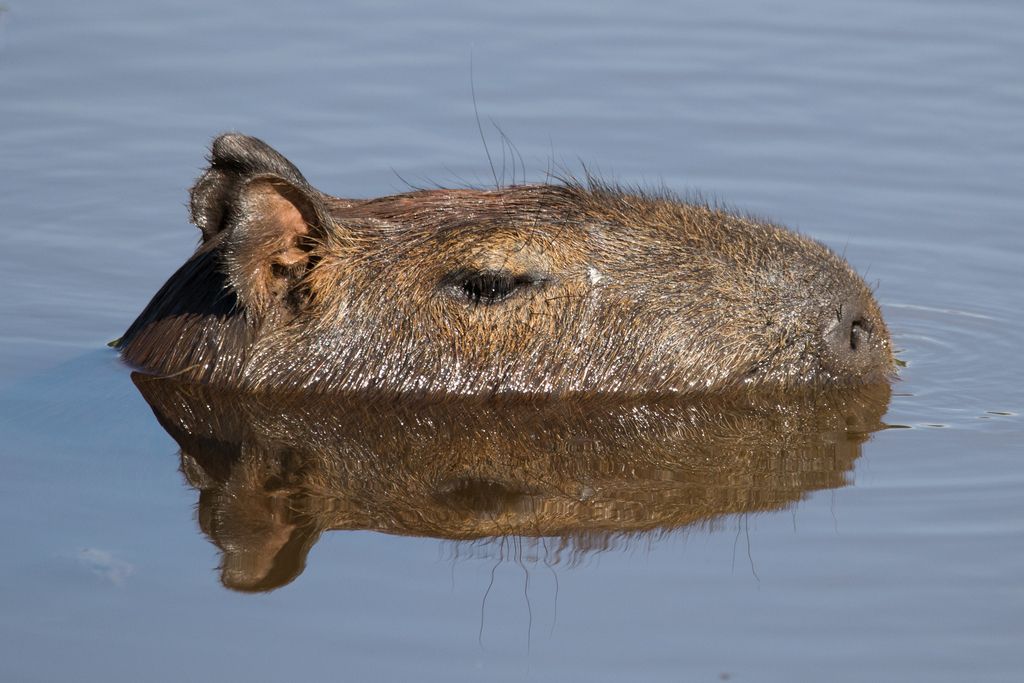 Los capibaras son los roedores más grandes del mundo, conocidos por ser animales sociales y ser excelentes nadadores con patas palmeadas. Pasan mucho tiempo en el agua, donde sus ojos, oídos y fosas nasales en la parte superior de la cabeza les permiten mantenerse ocultos.