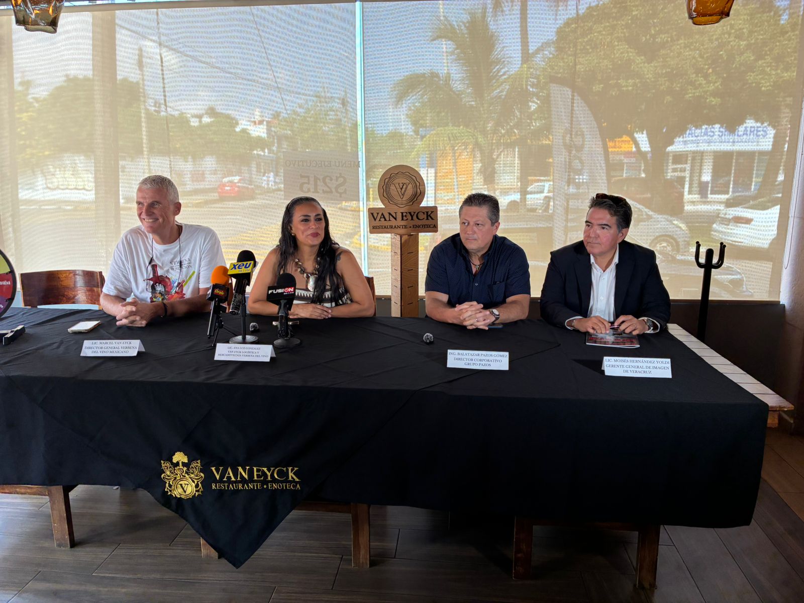 Presidieron la conferencia de prensa: Marcel van Eyck, Director General de la Verbena del Vino Mexicano; Ana Luz González de van Eyck, directora de Logística y Mercadotecnia de la Verbena del Vino Mexicano; Ing. Baltazar Pazos Gómez, Director Corporativo de Grupo Pazos y Moisés Hernández Yoldi, Gerente General del periódico Imagen de Veracruz.