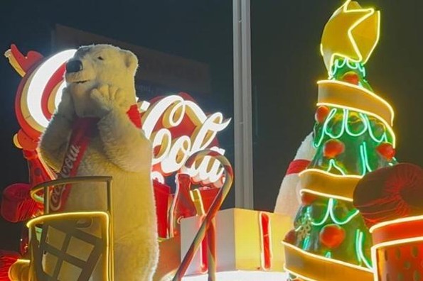 También, se vio la presencia de los osos polares de Coca-Cola quienes saludaban a la gente, durante el trayecto.