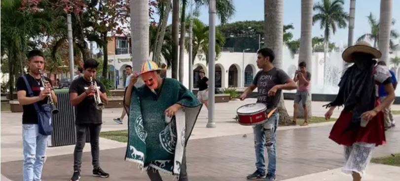Música y Baile: Las personas bailan y cantan la tradicional canción "El Viejo" al ritmo de la música jarocha.