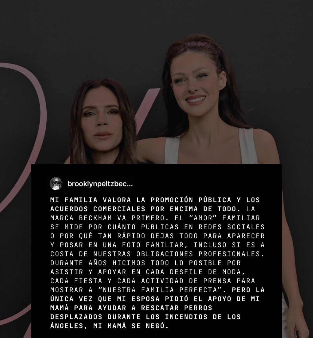 El primogénito de David y Victoria Beckham, Brooklyn, de 26 años, rompió hoy públicamente con ellos tras acusarlos de "una falta de respeto permanente" hacia su esposa Nicola Peltz.