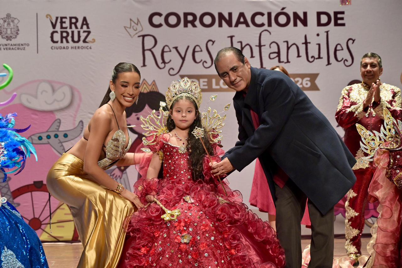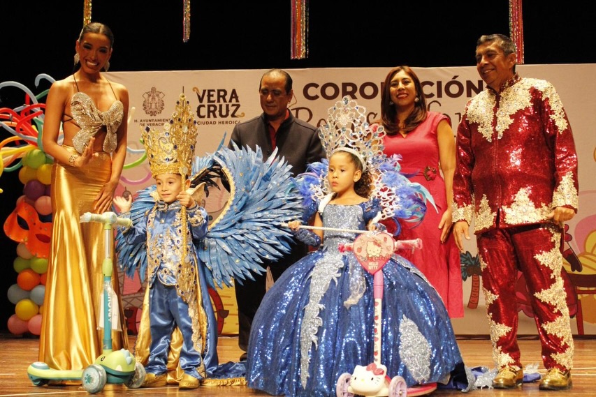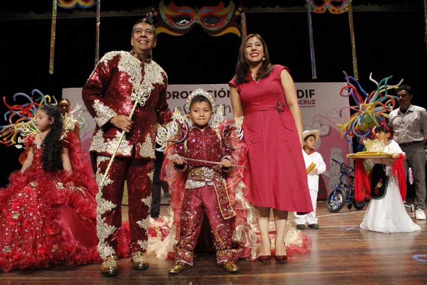 La presidenta del DIF Municipal de Veracruz, Daniela Lily Hernández y el Rey electo del Carnaval de Veracruz 2026 Bernardino Jiménez “Nayo”, coronaron a “Saúl I”; mientras que el director del DIF, Roberto Muñoz Joachín y la reina electa del Carnaval, Fernanda Pumar coronaron a Romina I, quienes recibieron bicicletas como premio.