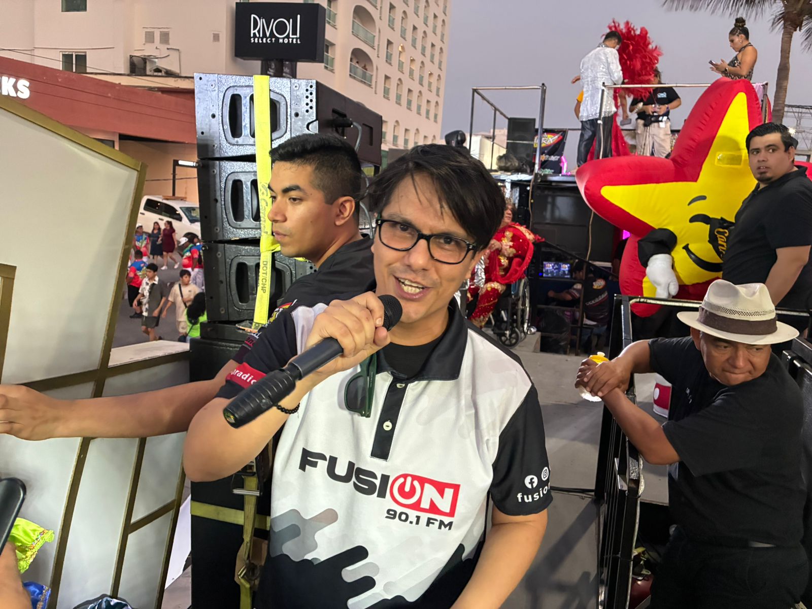 De impacto el carro alegórico de GRUPO PAZOS con sus marcas: XEU 98.1 FM; FUSIÓN 90.1 FM; LA FIERA 94.1 FM y YA! FM 102.9 con sus carismáticos y queridos locutores que iban poniendo un gran ambiente.