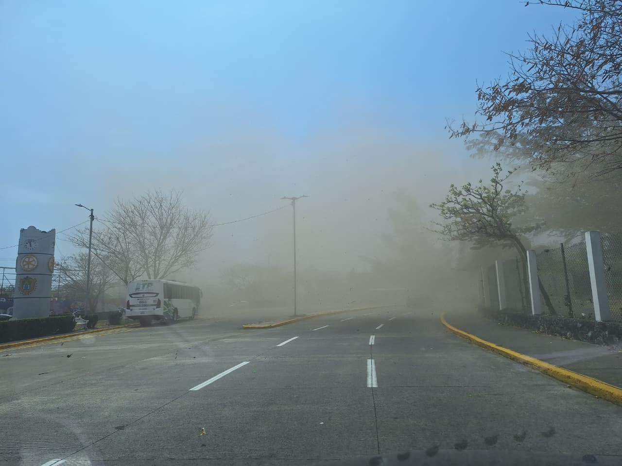 Además, se reportan estructuras caídas en la avenida Ejército Mexicano a la altura de la agencia de autos JAC y el anuncio de un antro en la avenida Ruiz Cortines.