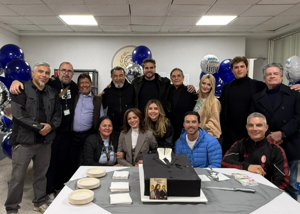 En medio de porras y con un pastel, el productor Juan Osorio, Silvia Navarro, Alejandro Camacho, Paulina Goto, Kimberly Dos Ramos, Cecilia Toussaint, Víctor González, Rodolfo Salas, Pedro Baldo y Luis Gerardo León felicitaron al actor y le