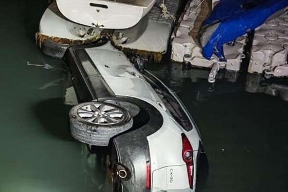 Un hombre que conducía a una camioneta blanca, cayó al mar con todo y la unidad a la altura del nuevo club de yates, la madrugada de este sábado.